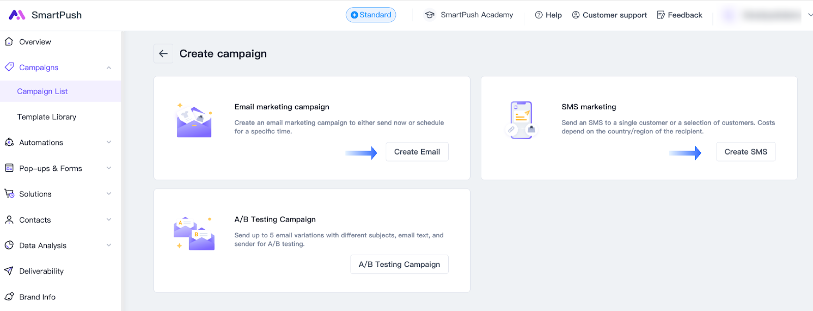 - Go to Campaigns > Create SMS campaign