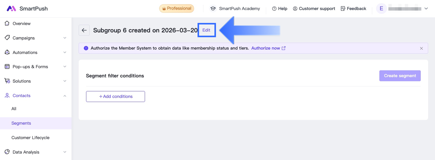 On the creation page, click Edit next to the segment name to rename it for easier identification.