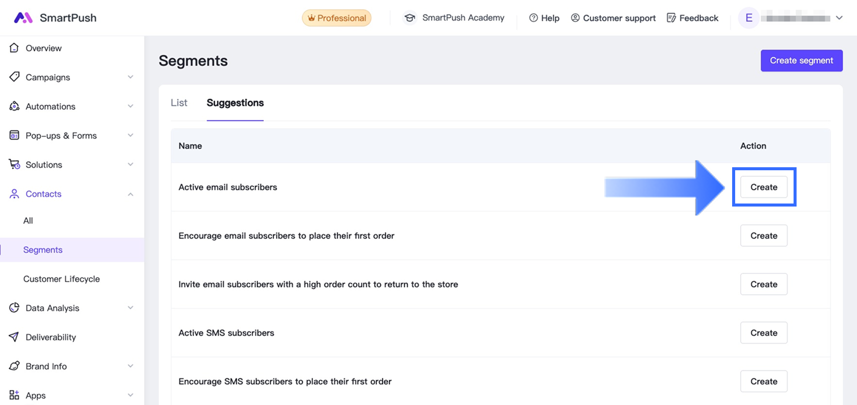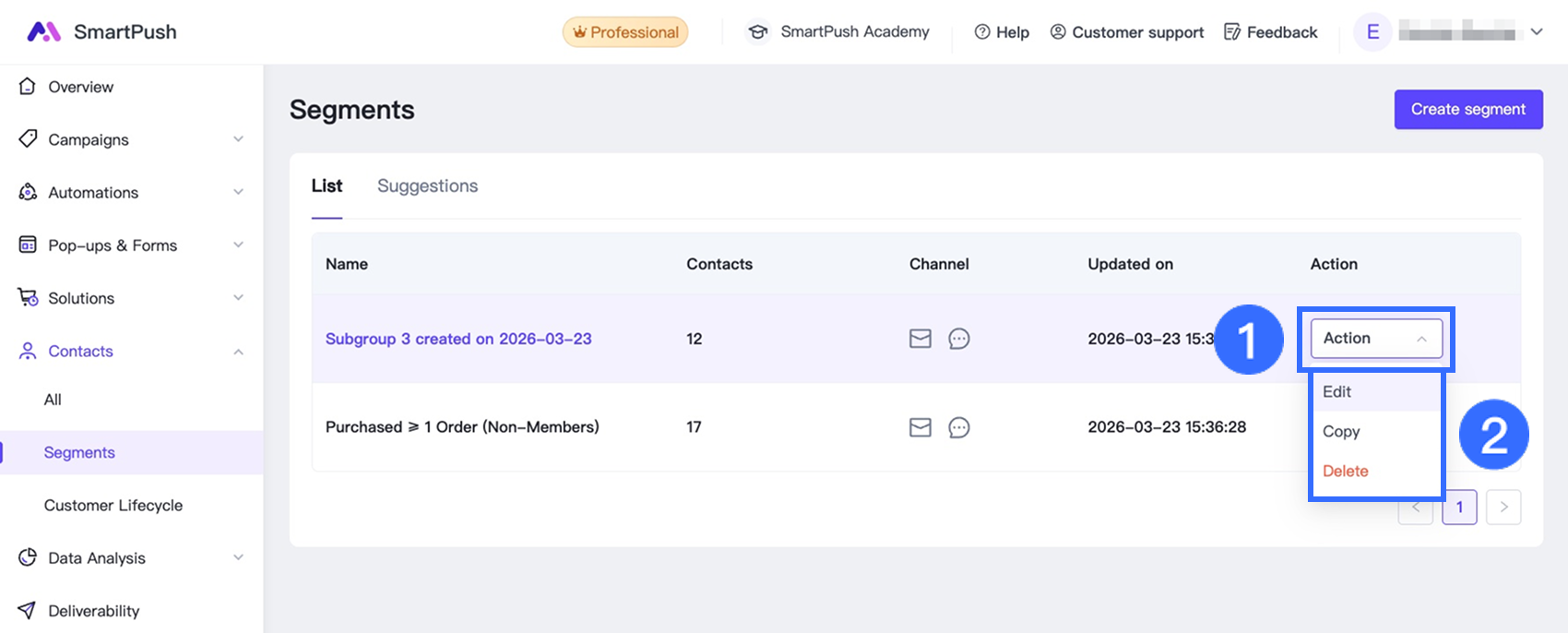 This section walks you through how to create and manage segments to achieve more precise audience targeting and marketing outreach.