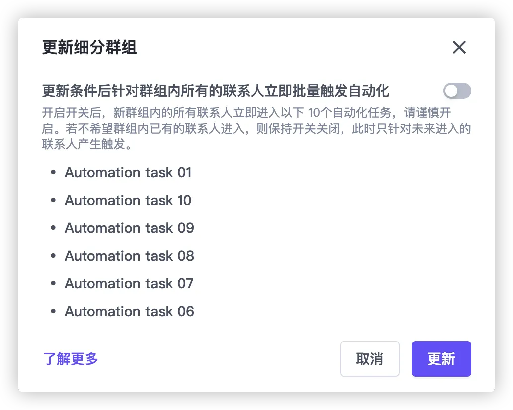 Once saved, the segment will automatically include or remove contacts based on their ongoing behavior.