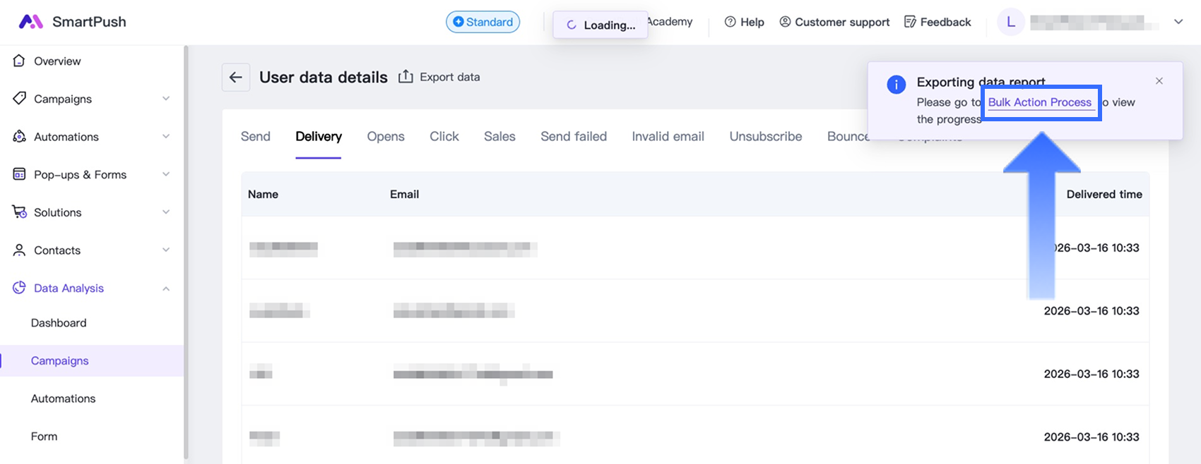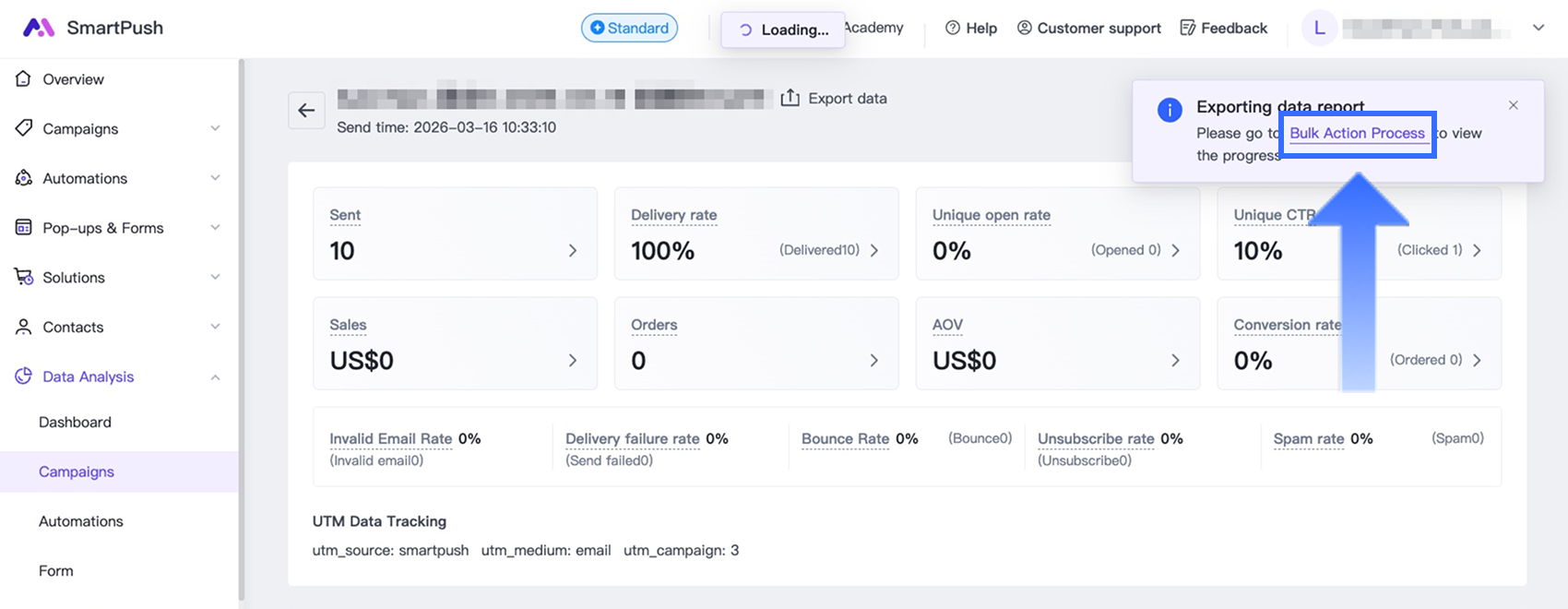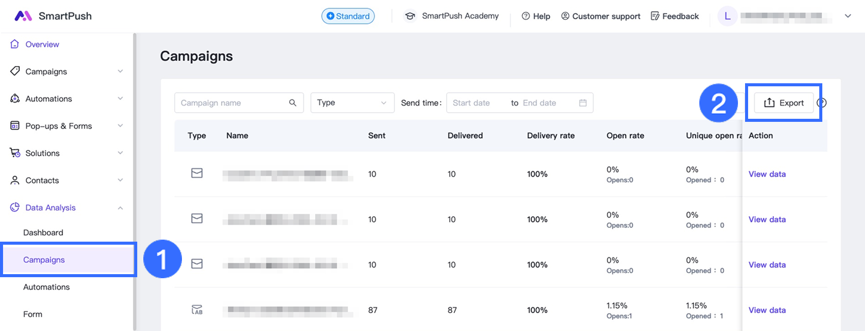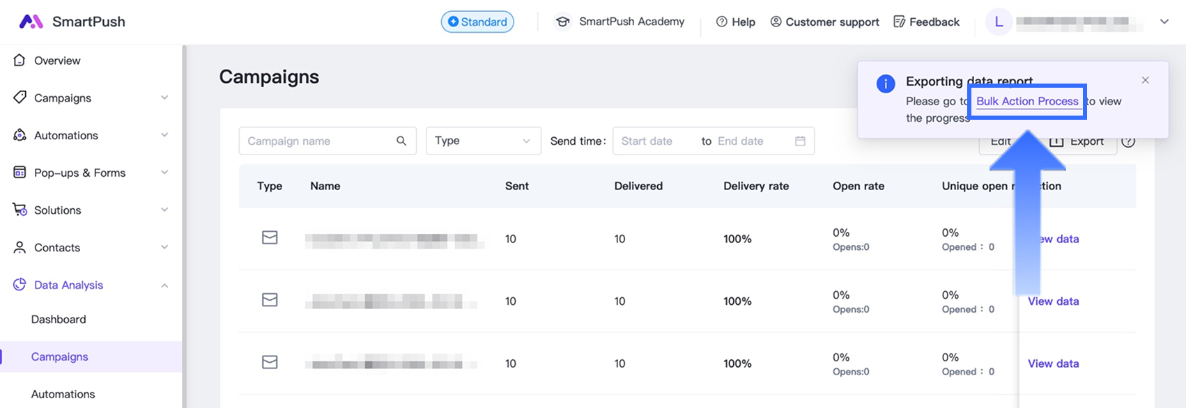 This article explains how to view and export campaign data reports in SmartPush.