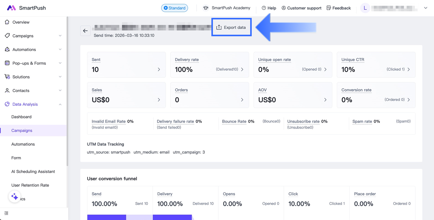 You can also export analytics data for a specific campaign.