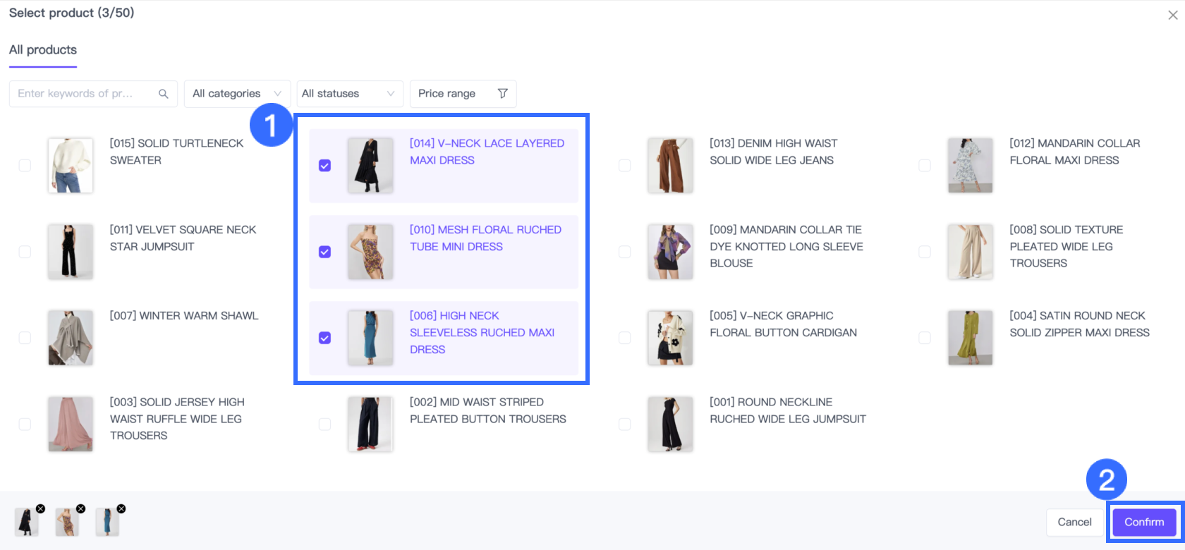 Choose the products you want to exclude and click Confirm.