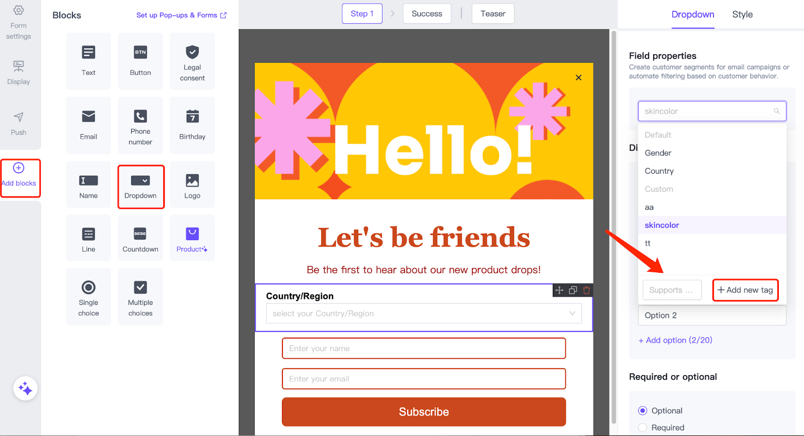 You can now add custom tags to pop-up forms—perfect for collecting specific customer info like skin type, hair color, or other business-relevant details.