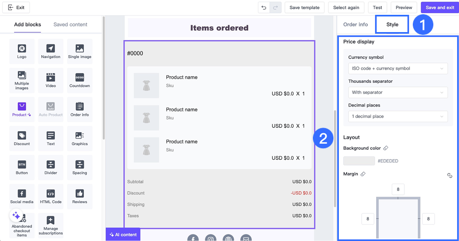 Once the configuration is complete, the system will automatically populate the order information in the email when a customer creates an order.