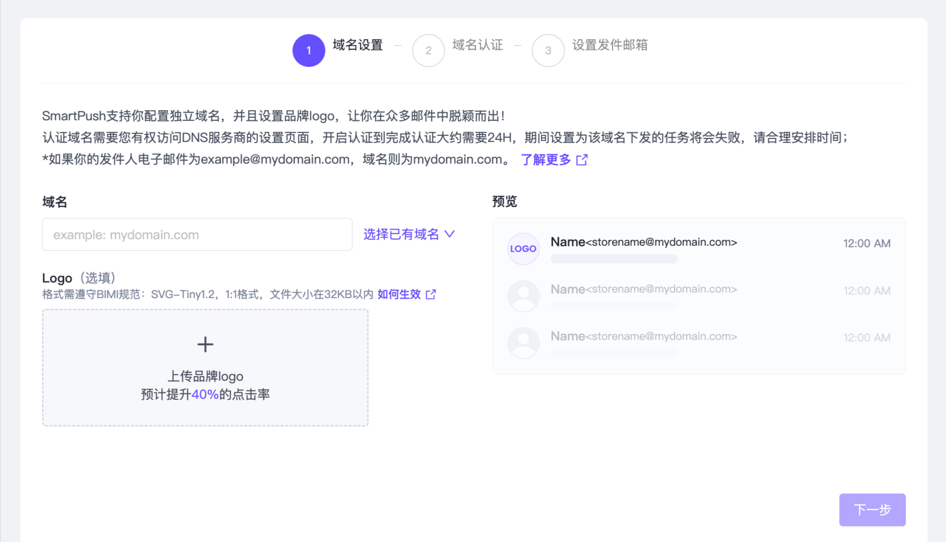 使用您自有域名的专属寄件地址,可提升邮件送达率与品牌识别度。