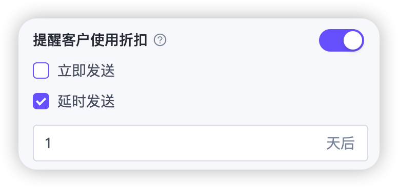 - 开启通知,还能自动发送邮件提醒顾客使用折扣,让顾客再次回到您的商店,创造更多复购;
