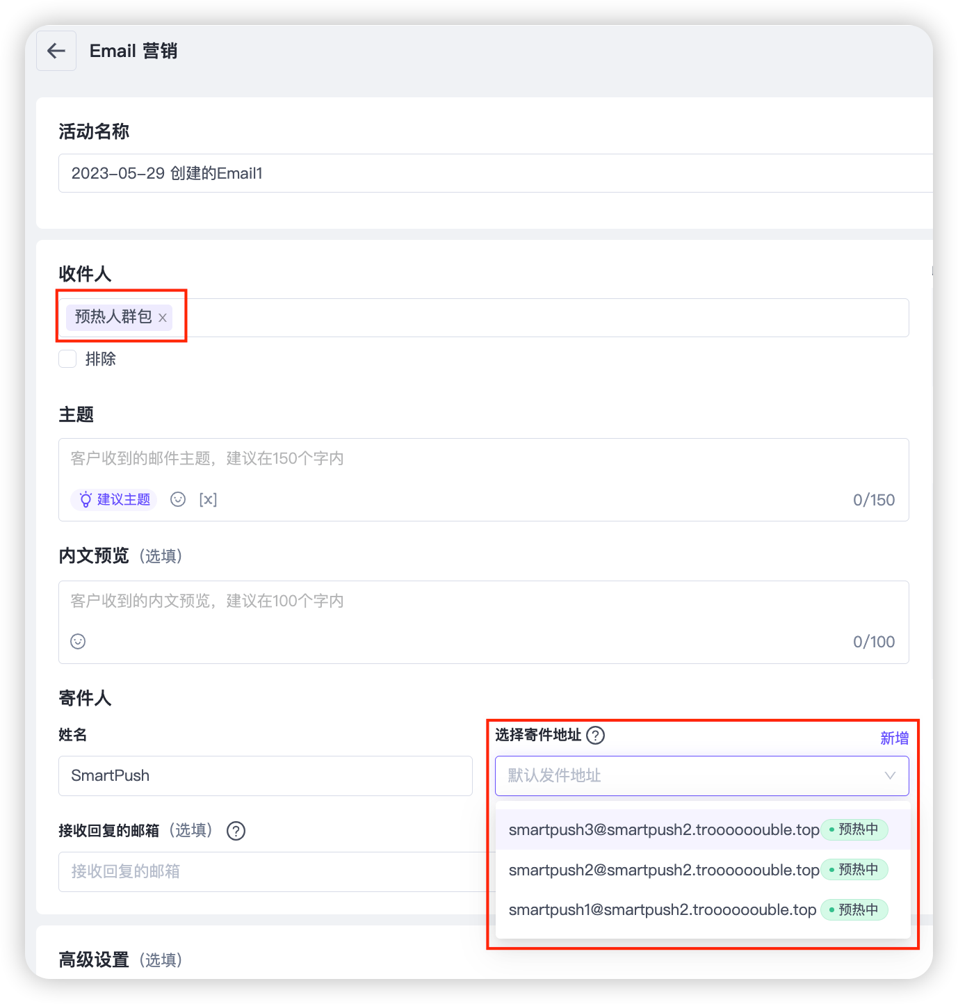 一、亮点功能首页新增【交付能力】模块,独立域名、邮箱校验、预热计划三位一体助力成功:配置独立品牌域名、在收件箱内展示logo,让您的品牌脱颖而出;免费使用邮箱有效性校验功能,一键清理垃圾邮箱;开启预热计划,稳步提升独立域名信誉度:开启后,将智能生成每日预热计划及相应预热人群包;在发送邮件时选择预热人群包以及需要预热的域名,即可完成当日预热计划;预热状态实时更新,清晰展现当前域名信誉度及预热邮件打开率。 还有其它问题?提交请求 评论