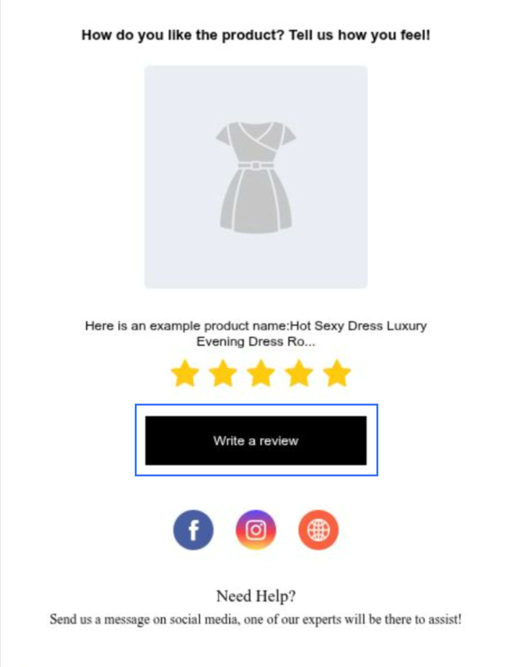 邮件中包含单一的「撰写评价」按钮,顾客将在独立评价页面完成所有评价。