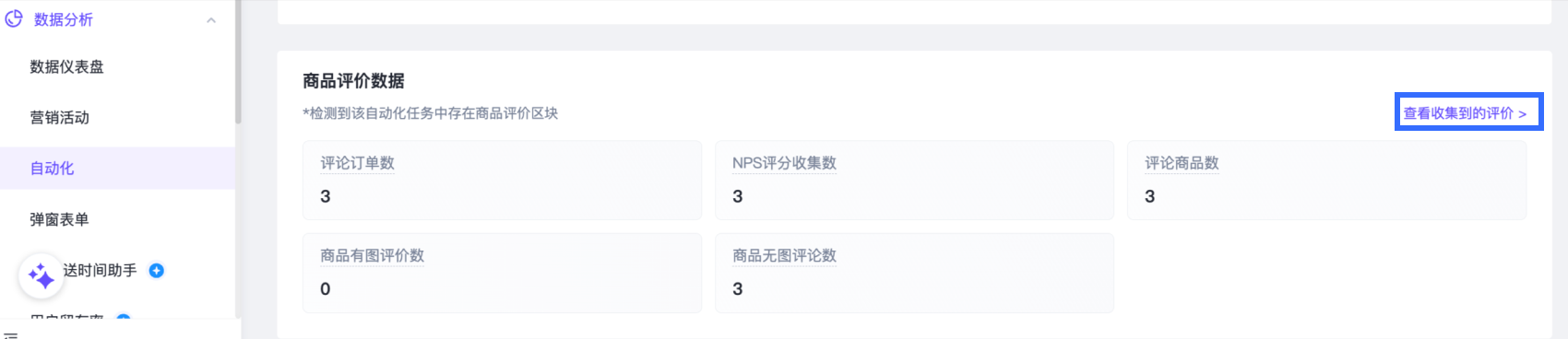 点击 查看收集到的评价可进入详细数据页面。