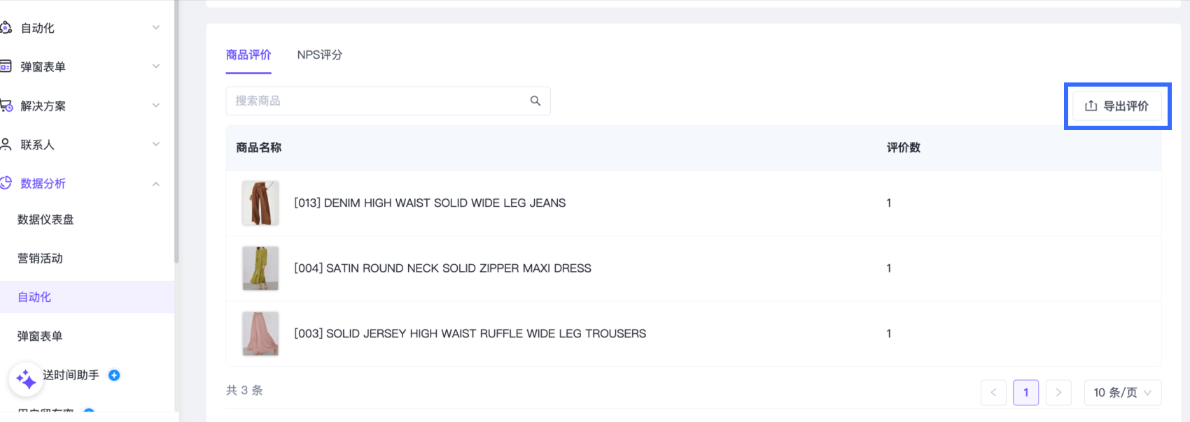 可从评价数据页面导出数据。
