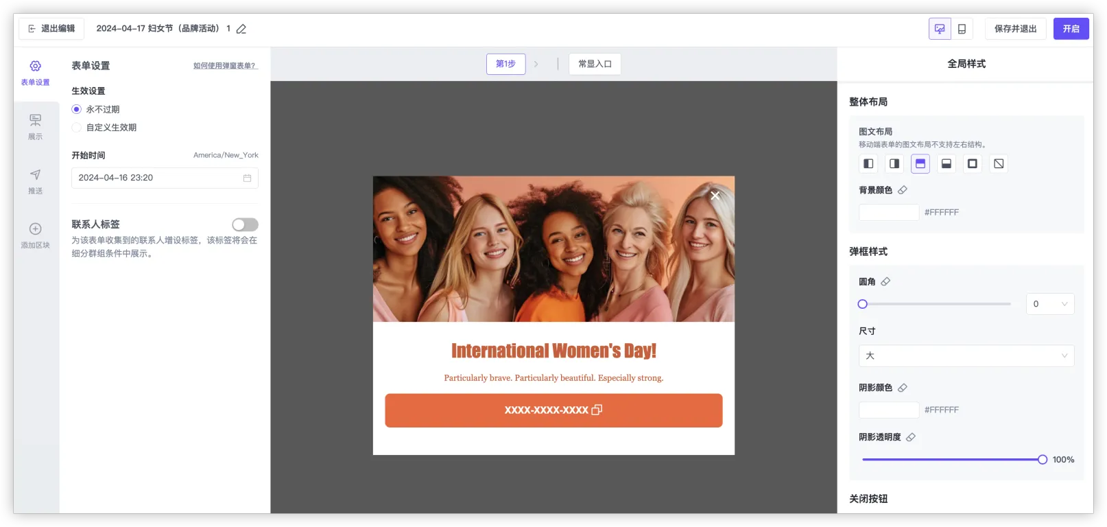 如何启用弹窗表单