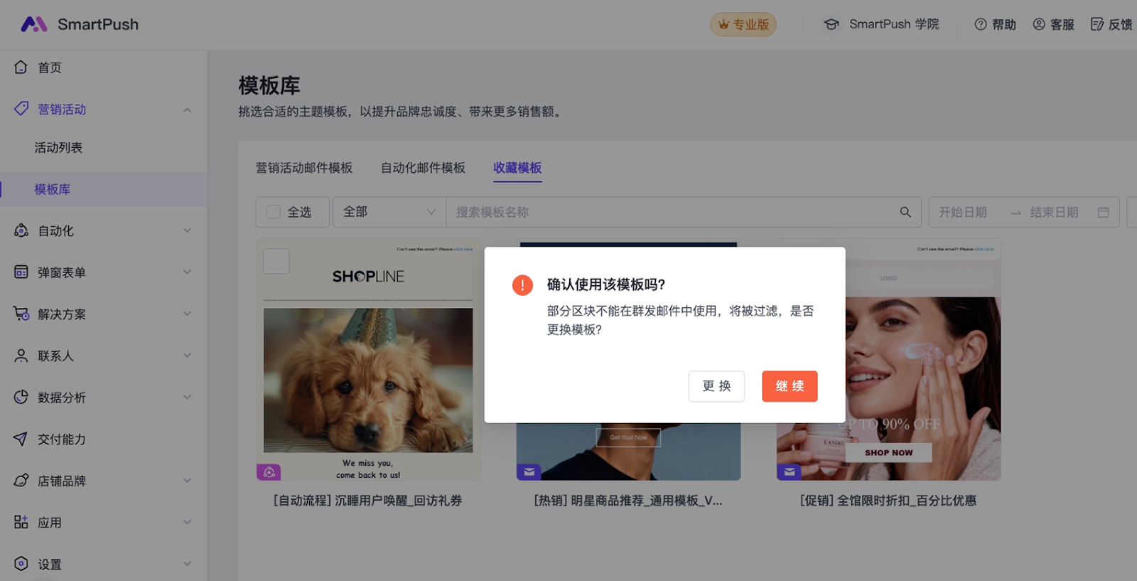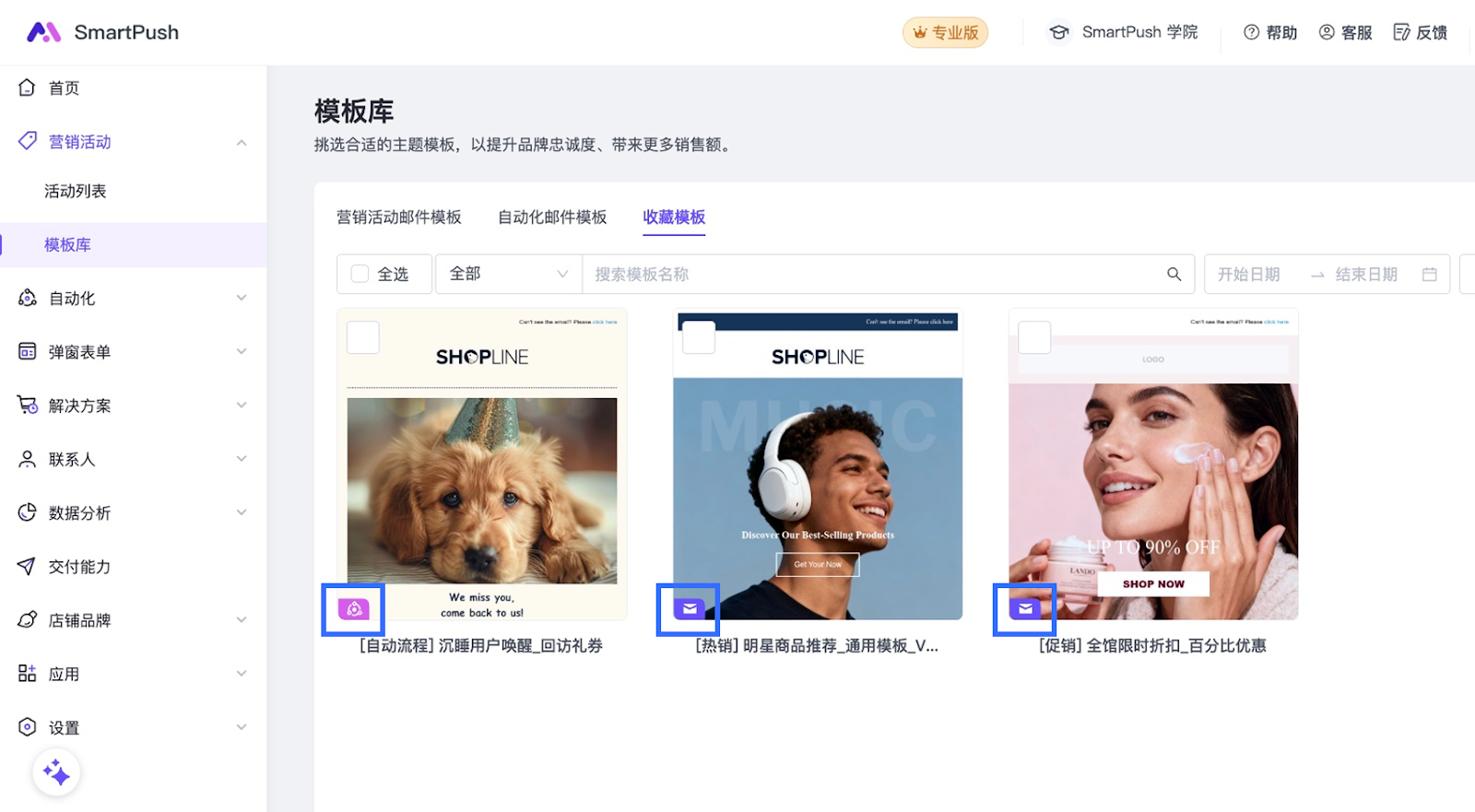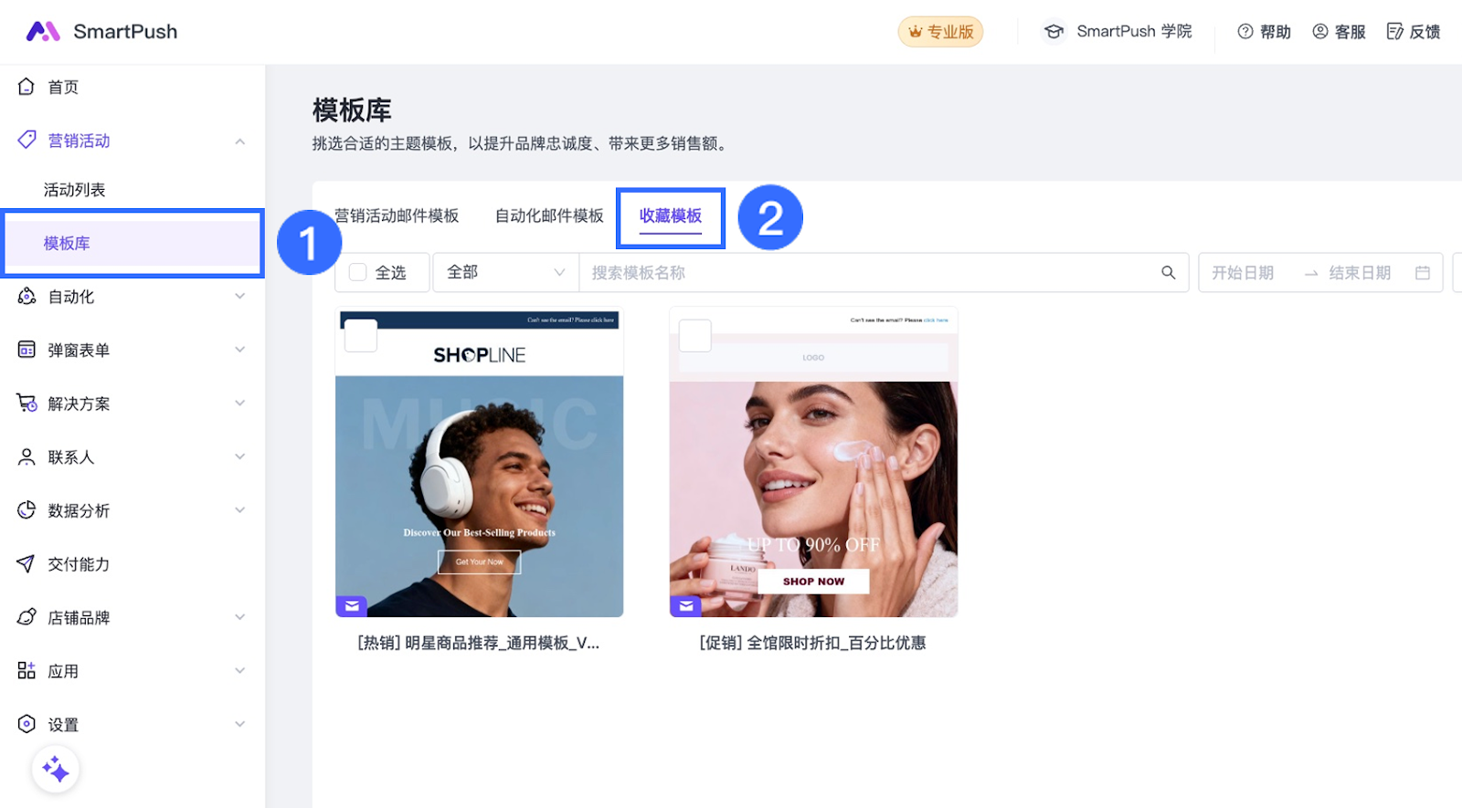 模板保存完成后,前往【营销活动】>【模板库】>【收藏模板】查看并管理您保存的模板。
