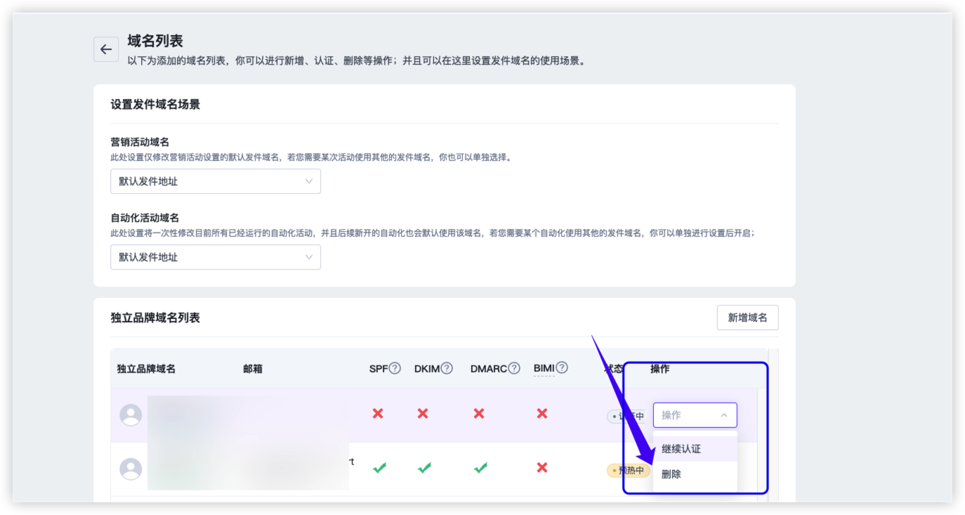 而后您可以在SmartPush删除异常状态的域名,再次配置正确的记录,重新解析生效。