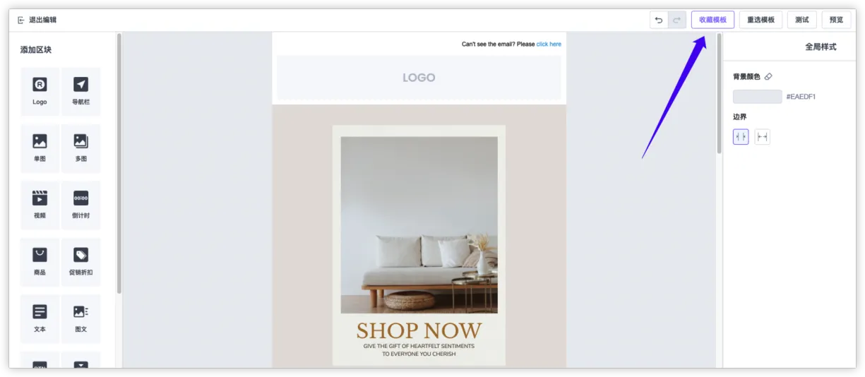 功能說明:利用郵件編輯器製作完成精美的郵件內容後,將內容保存為模板,即可在「模板庫」中找到該郵件模板,大幅提升製作郵件效率!