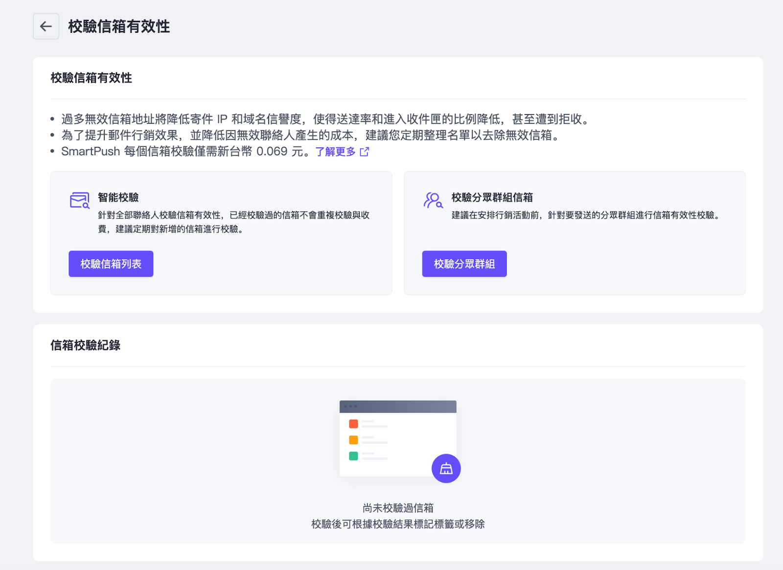 - 「智慧校驗」 — 定期維護郵箱名單品質