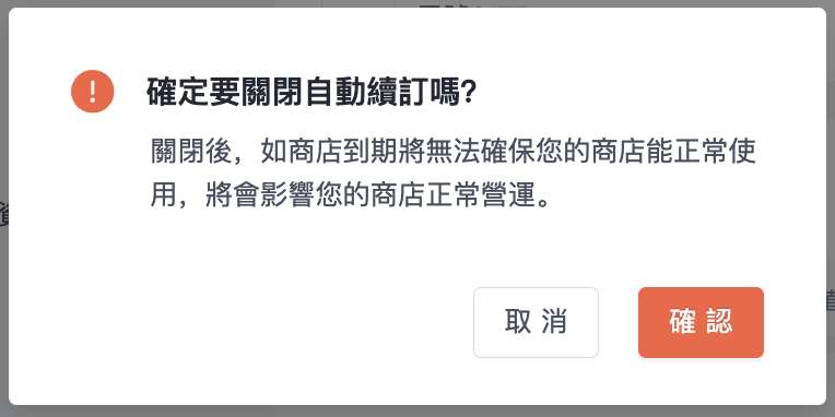 彈窗會提示「確認要關閉自動續訂嗎」,點擊「確定」即可關閉自動扣款功能。